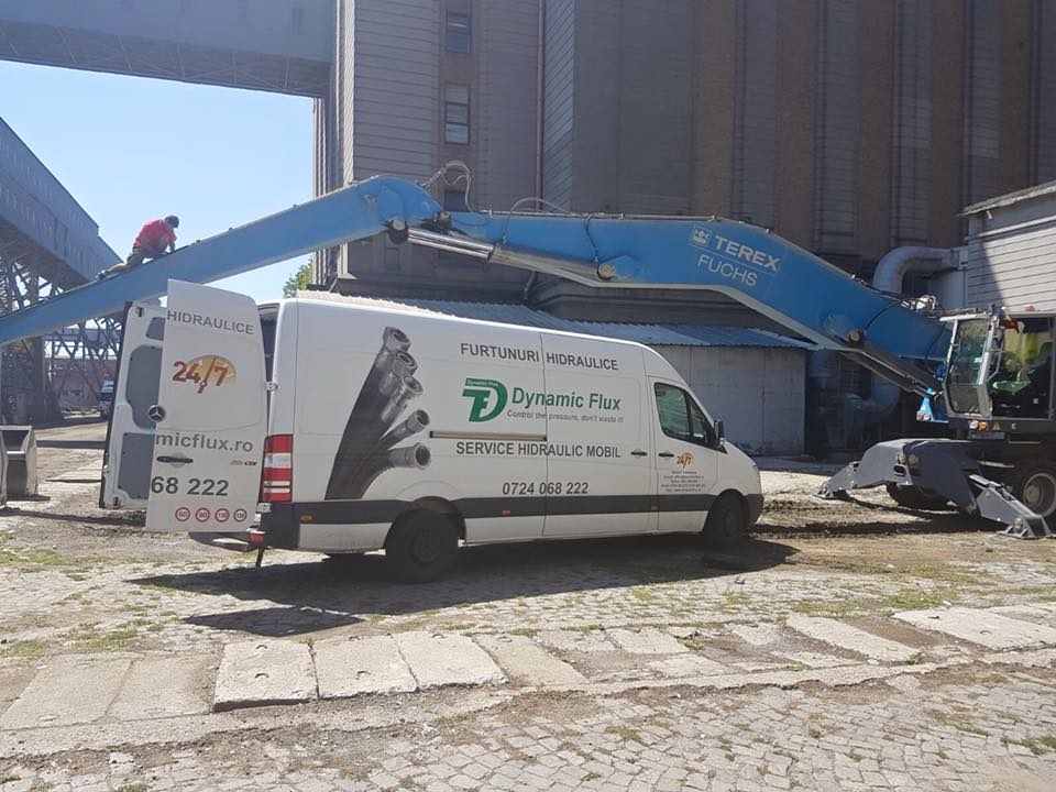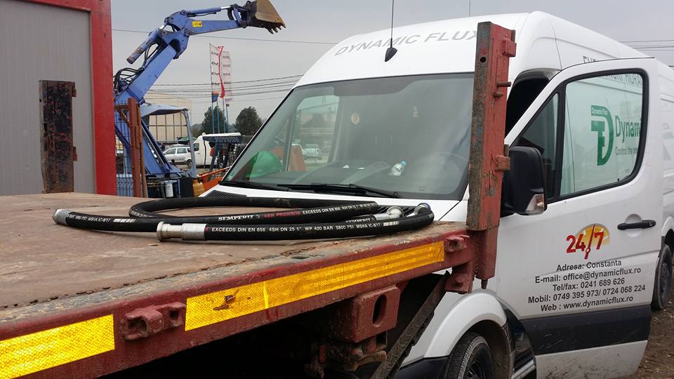 Răspundem rapid nevoilor clienților, intervenind, la fața locului cu Service-ul Hidraulic Mobil. Disponibil 24 de ore pe zi, 365 zile pe an este conceput asemenea unui atelier, echipat cu Presa hidraulica pentru sertizat furtunurile si masina de tăiat. Se găsesc permanent in dotarea Service-ului Mobil furtunuri hidraulice de la DN 5 la DN 50, bucse, armaturi, reductii, adaptori.